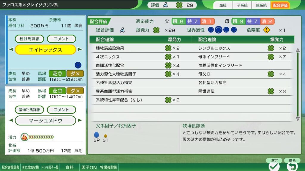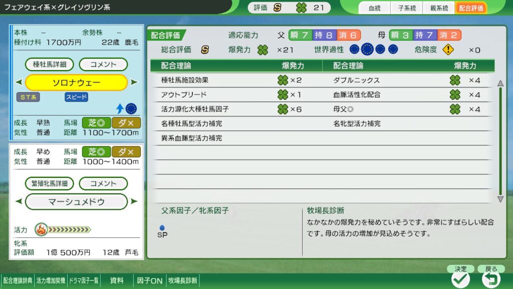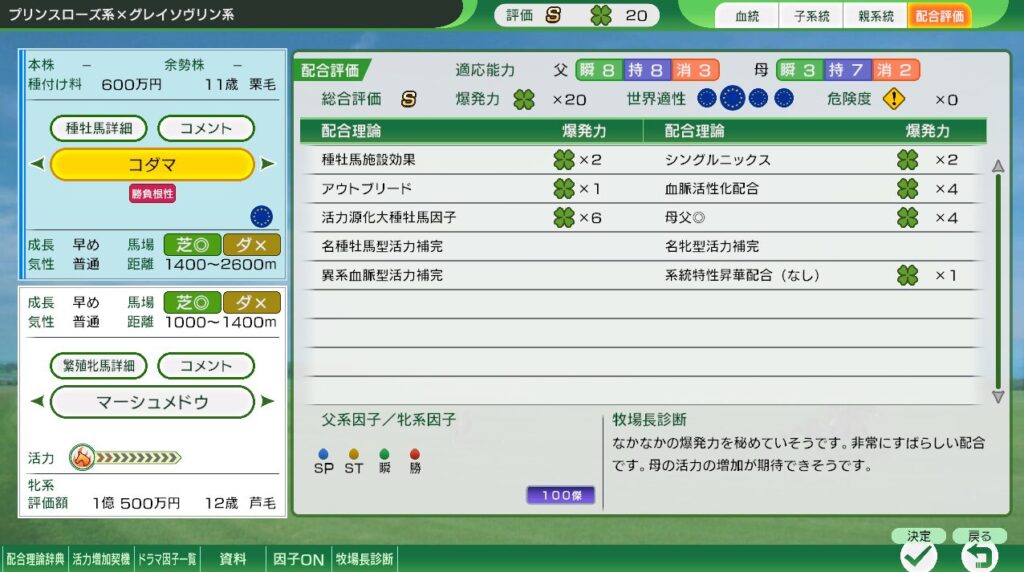 父系因子/牝系因子が SP(小)しかないのが、やや気になる。