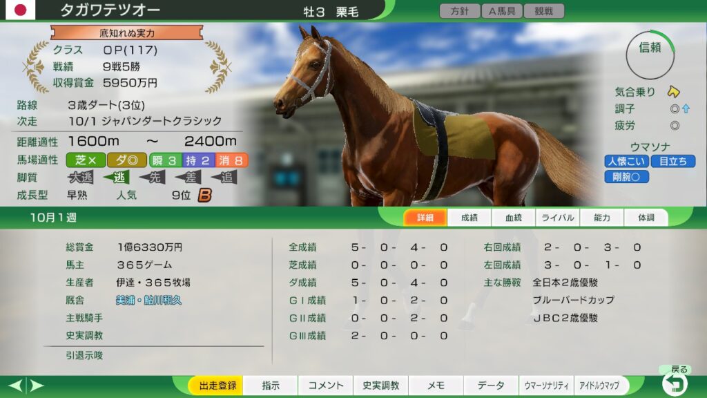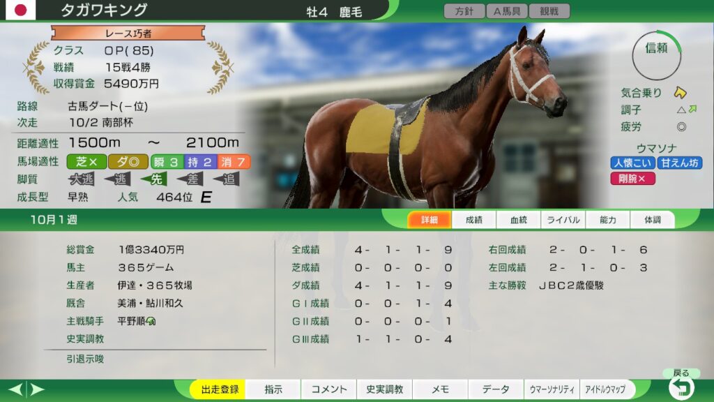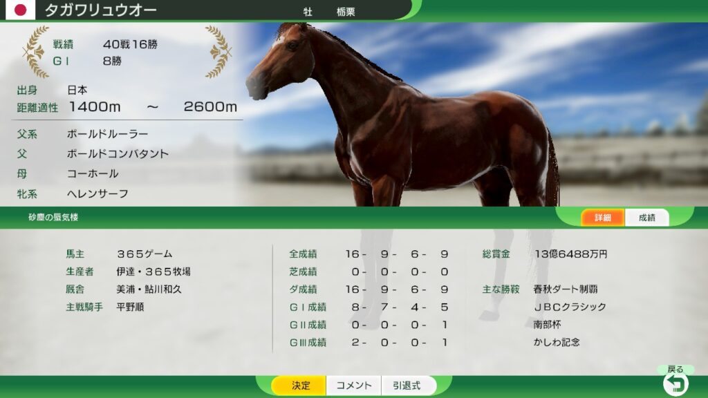 3歳のダート三冠路線もライバルに遅れをとるので、3歳以降は重賞での賞金稼ぎに切り替えるとよいだろう。