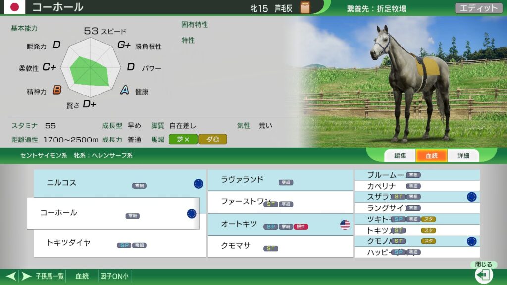 テスコボーイ系を伸ばしたいなら、この馬で世界100傑入りし、スピード因子2つを獲得したい。