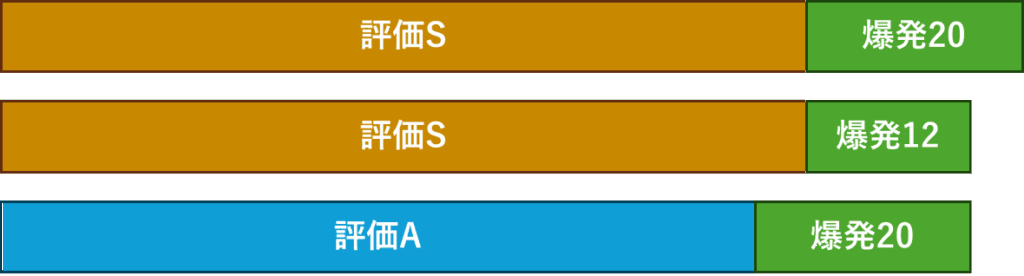 評価S爆発12は、評価A爆発20と同等と考えると良いでしょう。