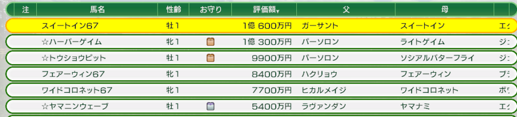 この馬を購入する場合、ルーキーポイント譲渡馬は、ヤマニンウェーブ以外を選ぶと良いだろう。
