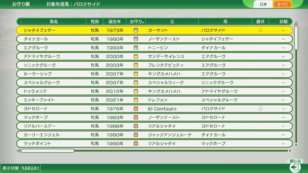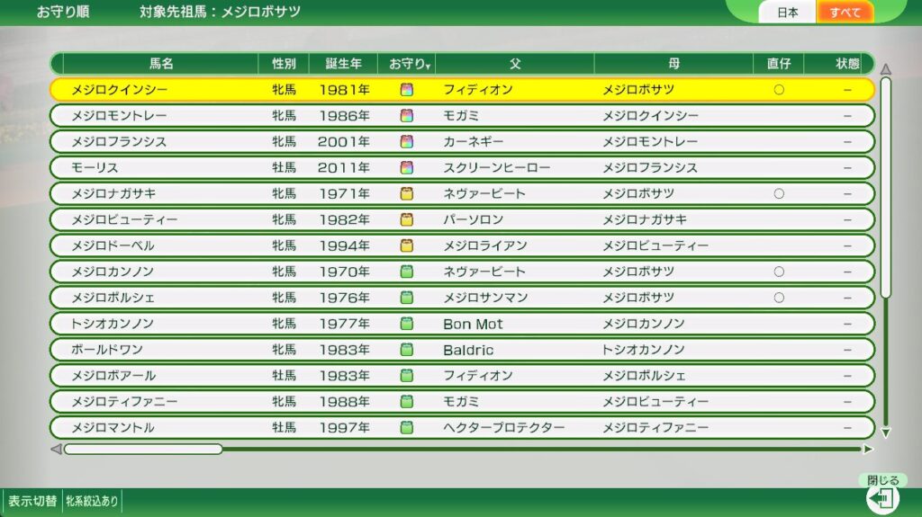 虹札も選択可能ですが、繁殖牝馬はお目当ての子孫につながる直仔が生まれていない事をが絶対条件です。
