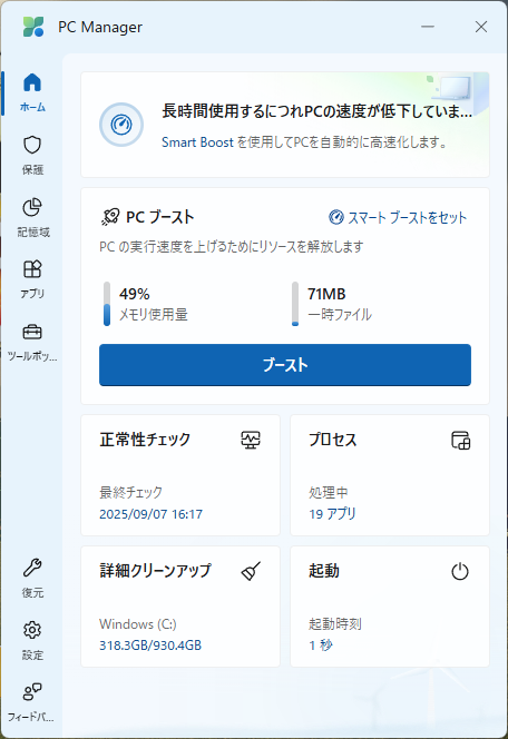 これらをまとめて管理できるのは、PCマネージャーならではの強みです。